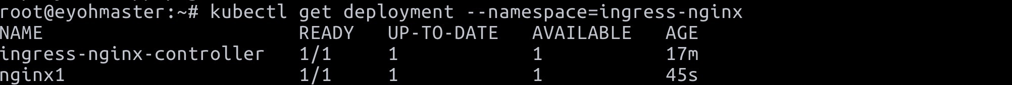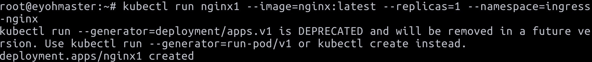 $ kubectl run nginx1 --image=nginx:latest --replicas=1 --namespace=ingress-nginx