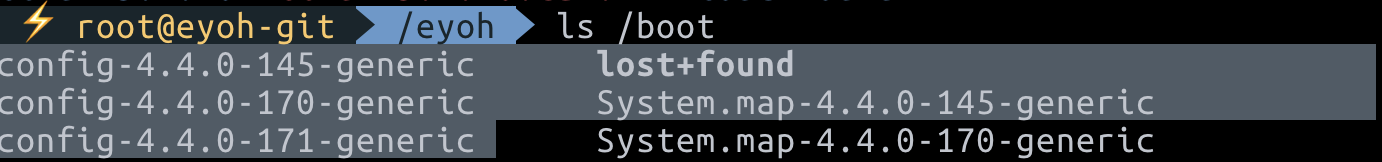 제가 사용한 배포판의 경우 /boot 디렉토리에 아래사진과 같이 4.4.0-x 버전에 대한 config. 파일들이 존재하고 있습니다.