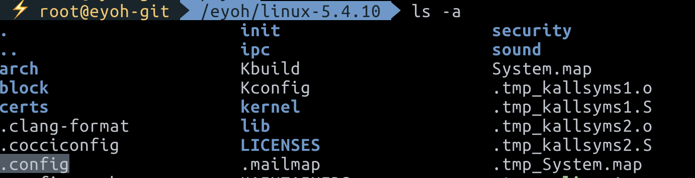 설정 값들은 커널 소스 폴더에 .config 라는 이름의 파일로 저장됩니다.